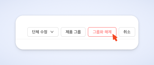 그룹화를 해제하고 싶다면, 그룹화 상품을 클릭한 상태에서 [그룹화 해제] 버튼을 눌러주세요.
