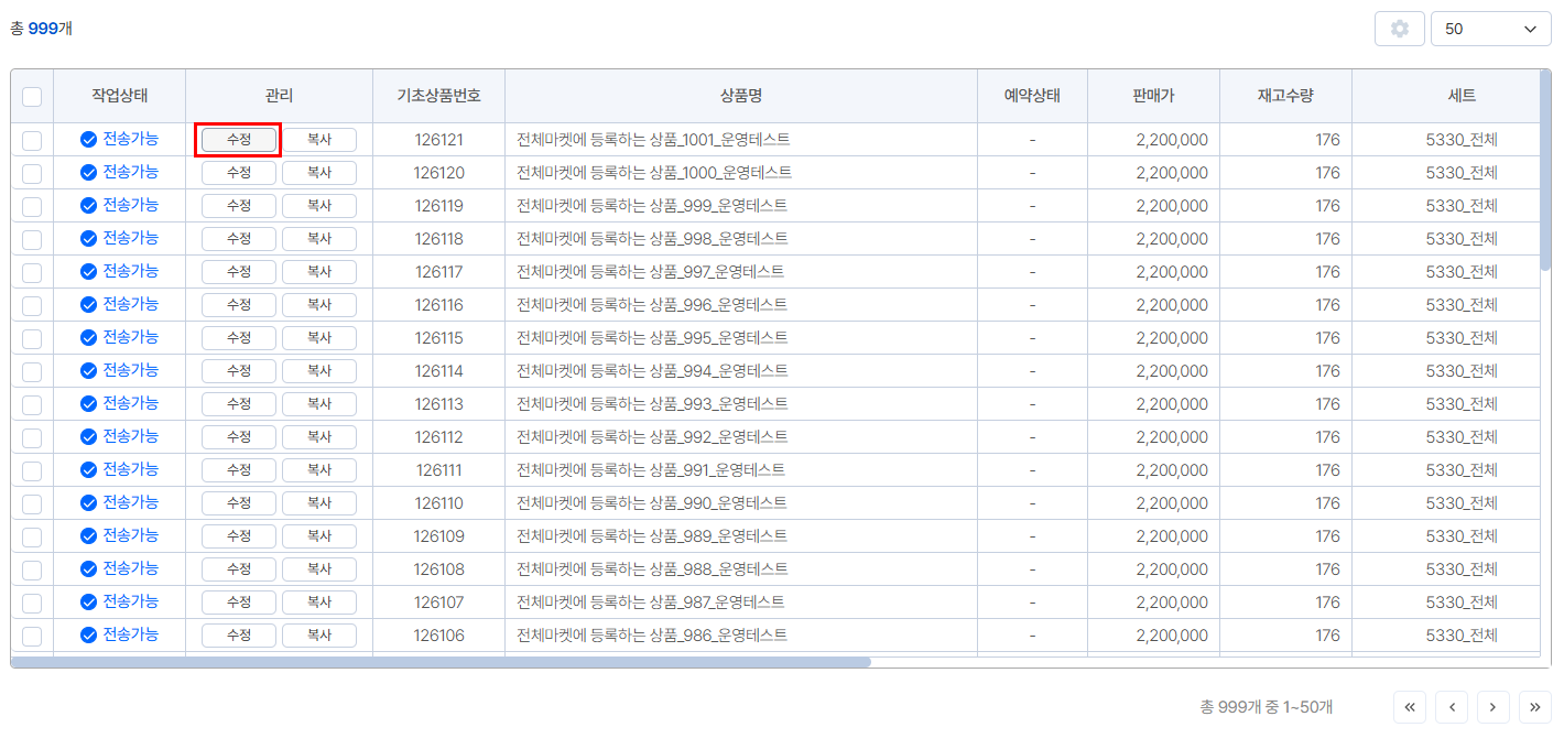 기초상품에 적용된 세트를 일괄적으로 수정할 수 있어요.