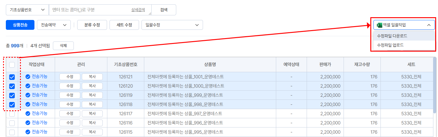 다수의 기초상품을 엑셀로 일괄수정 할 수 있어요.