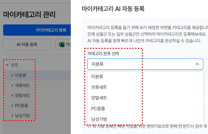 마이카테고리란 자주 사용하는 카테고리를 등록하여 상품등록 시 활용할 수 있는 기능이예요.