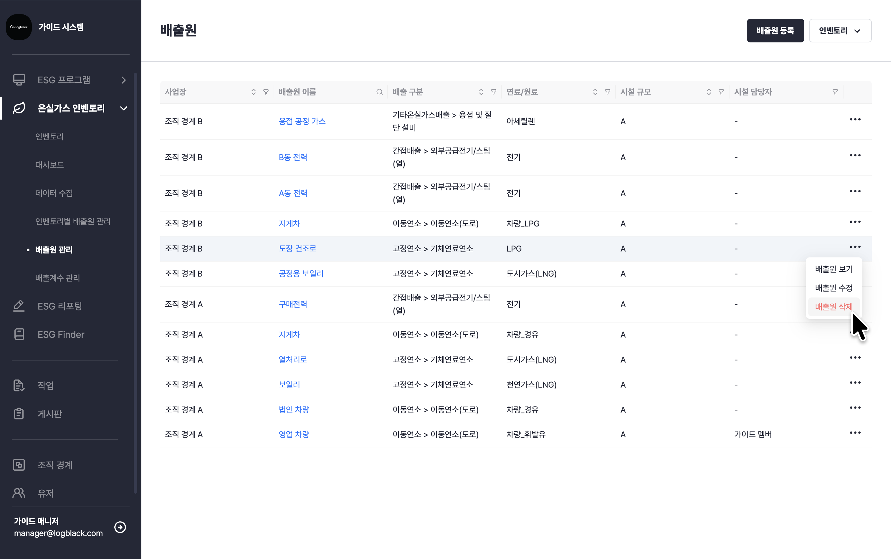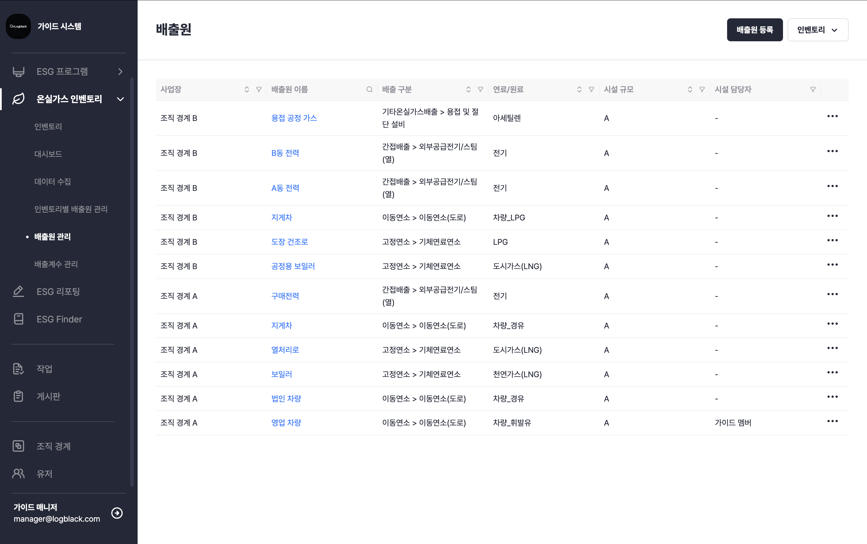 온실가스 인벤토리 > 배출원 관리