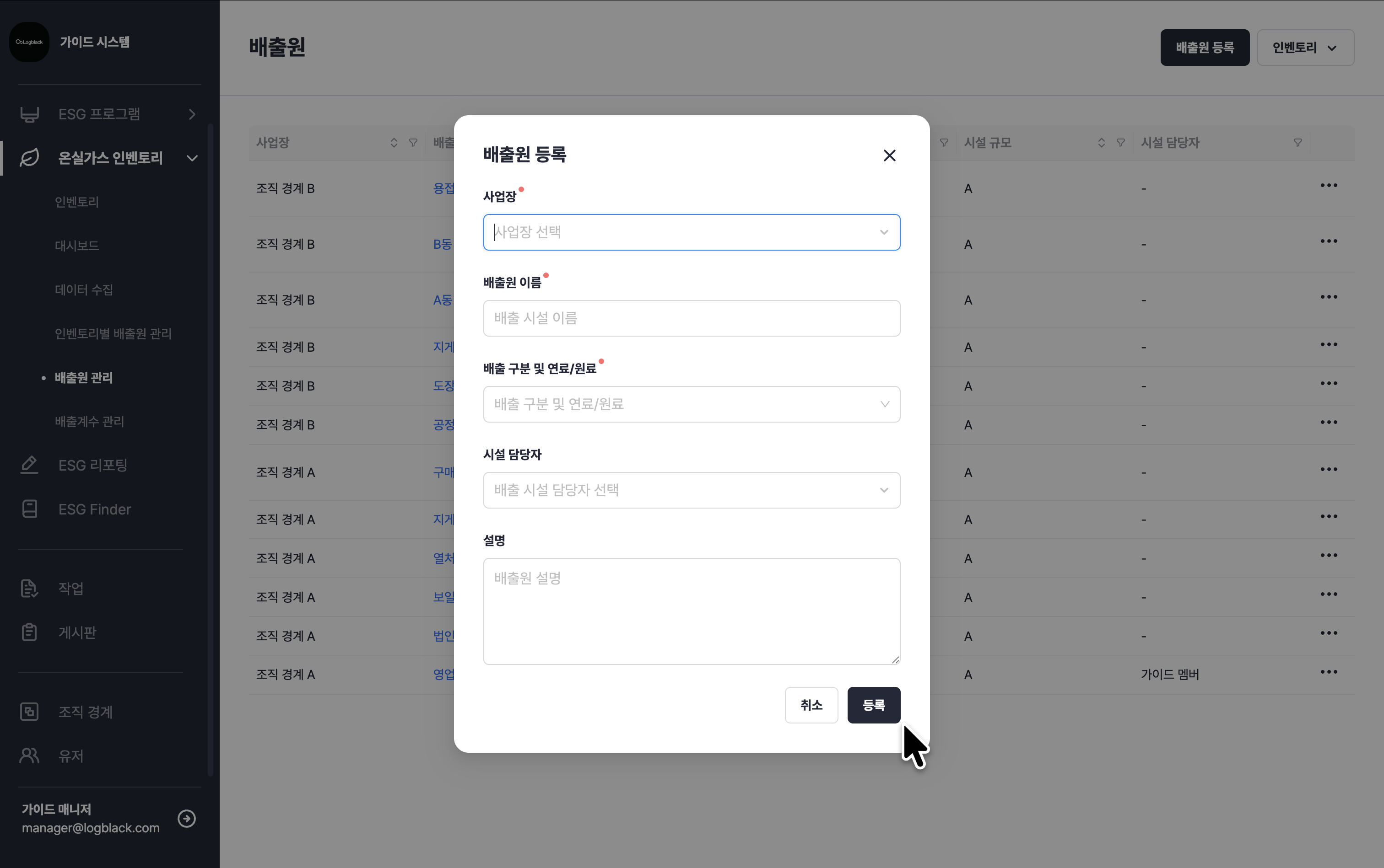 온실가스 인벤토리 > 배출원 관리 > 배출원 등록
