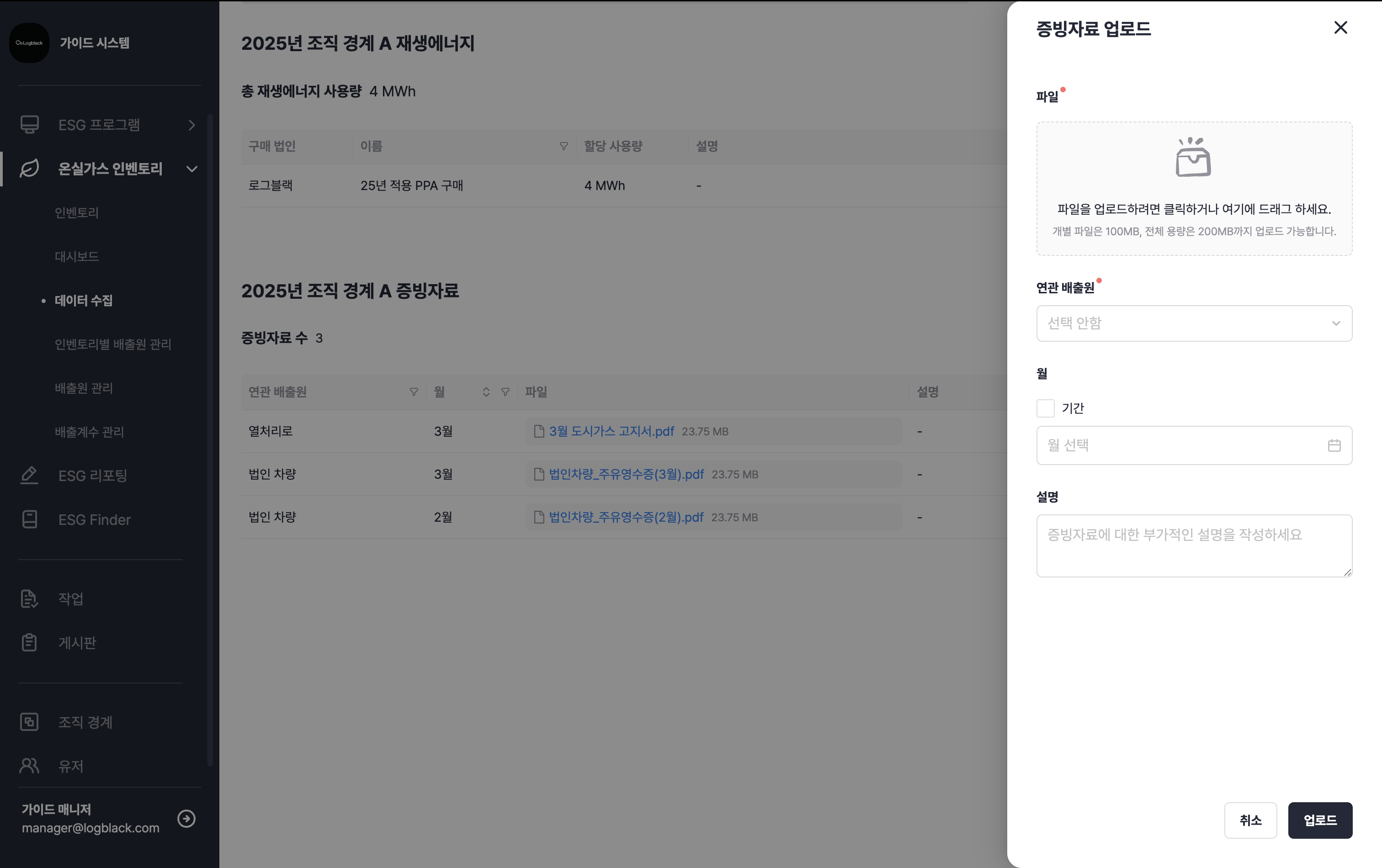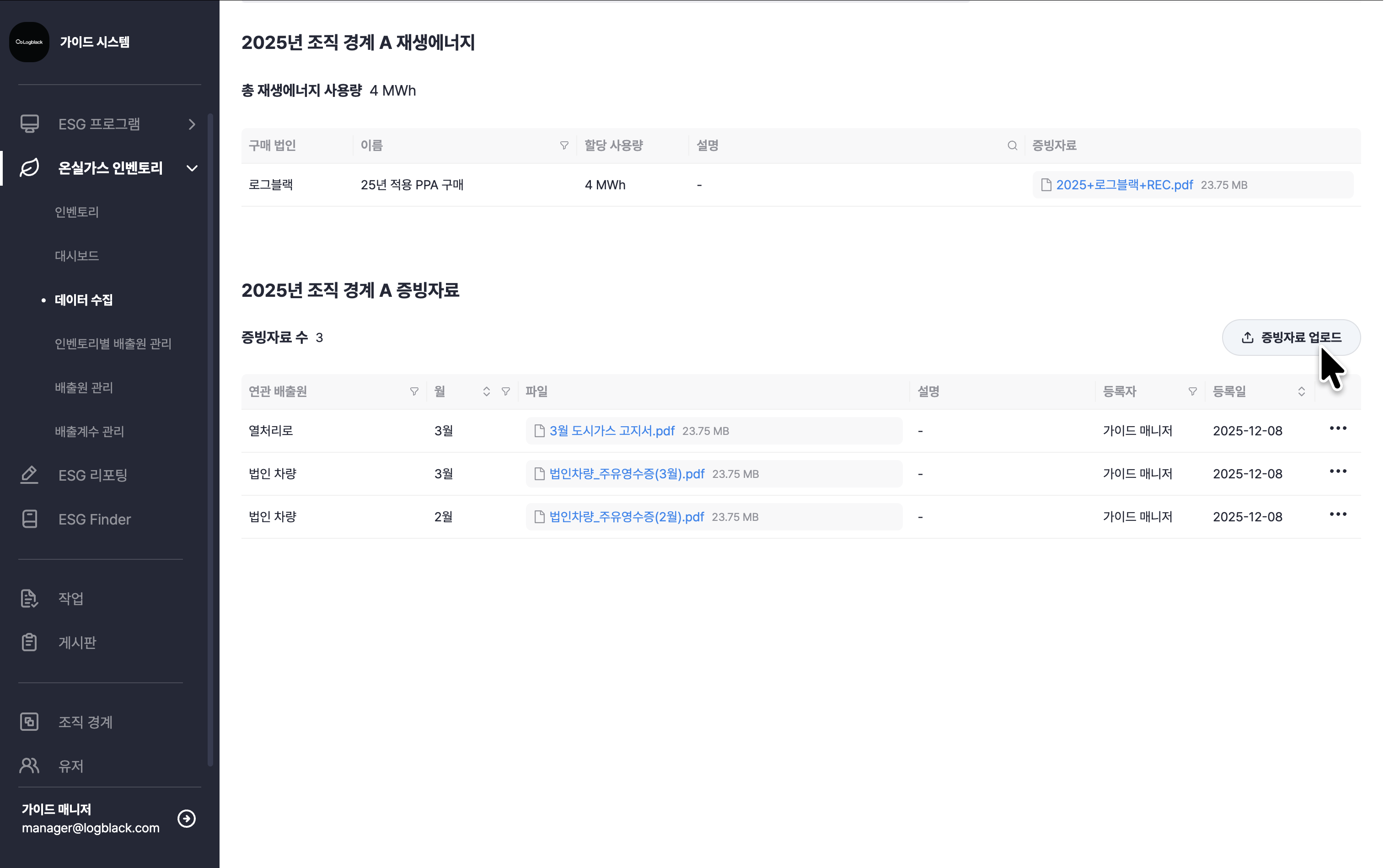 온실가스 인벤토리 > 데이터 수집 > 증빙자료 업로드