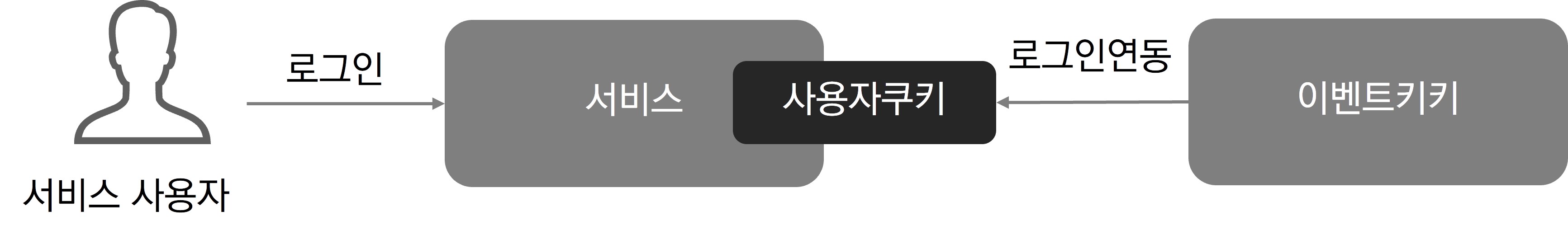 쿠키를 이용한 연동 (웹 방식) | 웹 페이지, 하이브리드 앱에서 활용 | 고객사 서비스에서 특정 값의 쿠키를 생성해 주면 해당 쿠키를 이벤트키키에서 사용하여 로그인 처리 웹기반의 일반적 방식 |