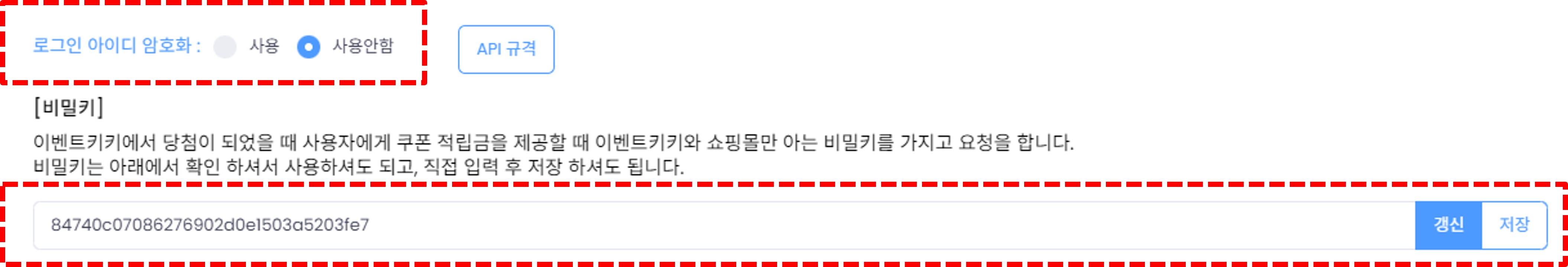 이벤트키키도 연동 설정에서 확인할 수 있는 key 를 활용하여 아이디를 복호화 합니다.