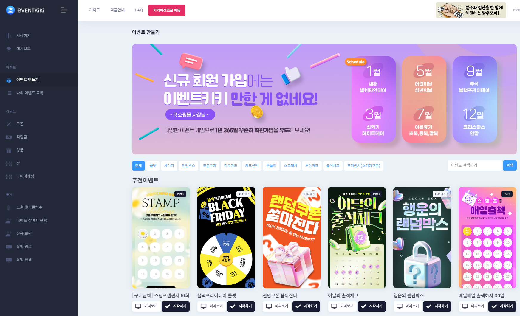 이벤트키키 오픈 후 가장 많은 고객이 참여 했던 룰렛 이벤트를 중심으로 이벤트 생성 방법을 알려 드리겠습니다.