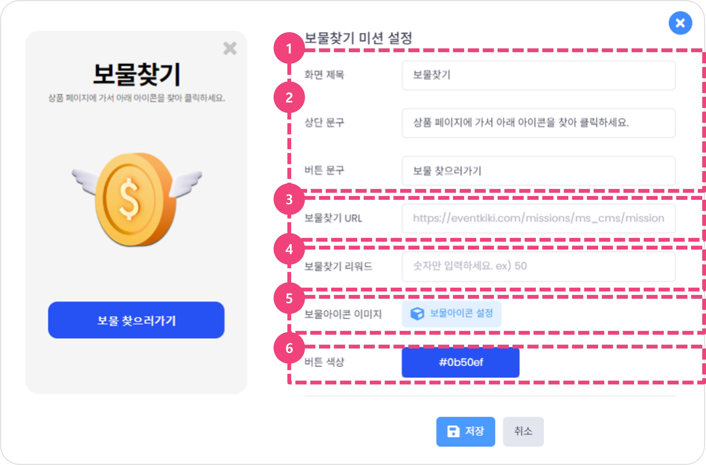 보물을 찾았을 경우, 보상할 포인트 입력