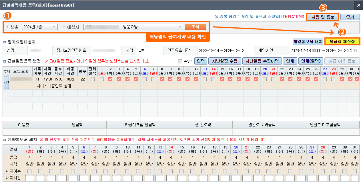 공단 업무포털(롱텀) > [급여계약내용 등록] 메뉴 접속