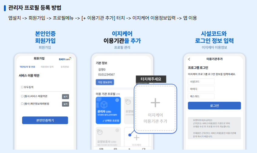 ‘이지케어’ 통합앱 설치 후 회원가입 및 로그인