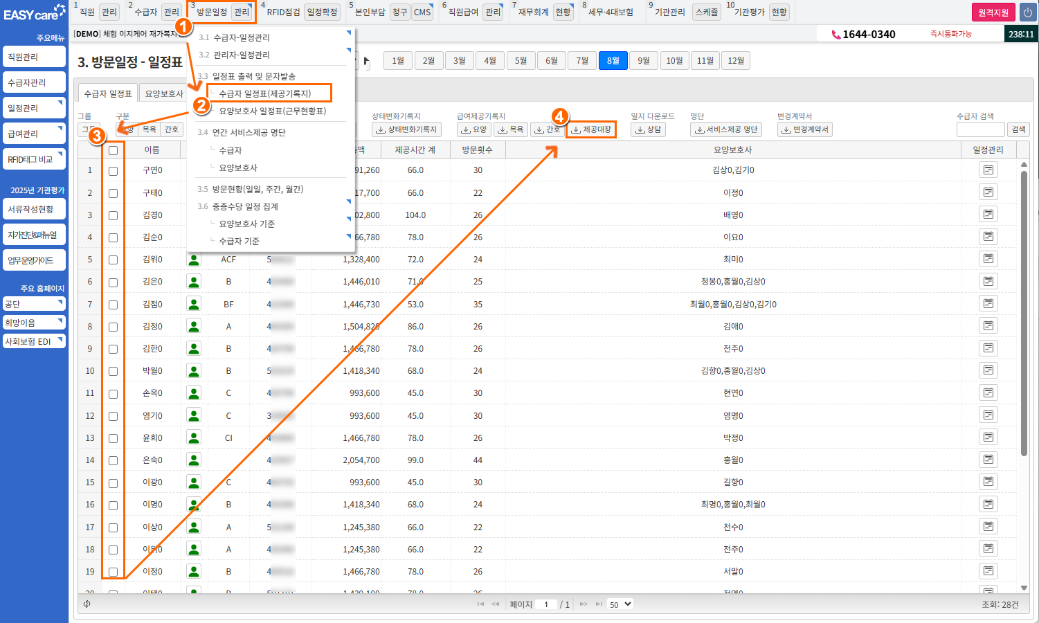 [3 방문일정] > [3.3 일정표 출력 및 문자발송] 클릭