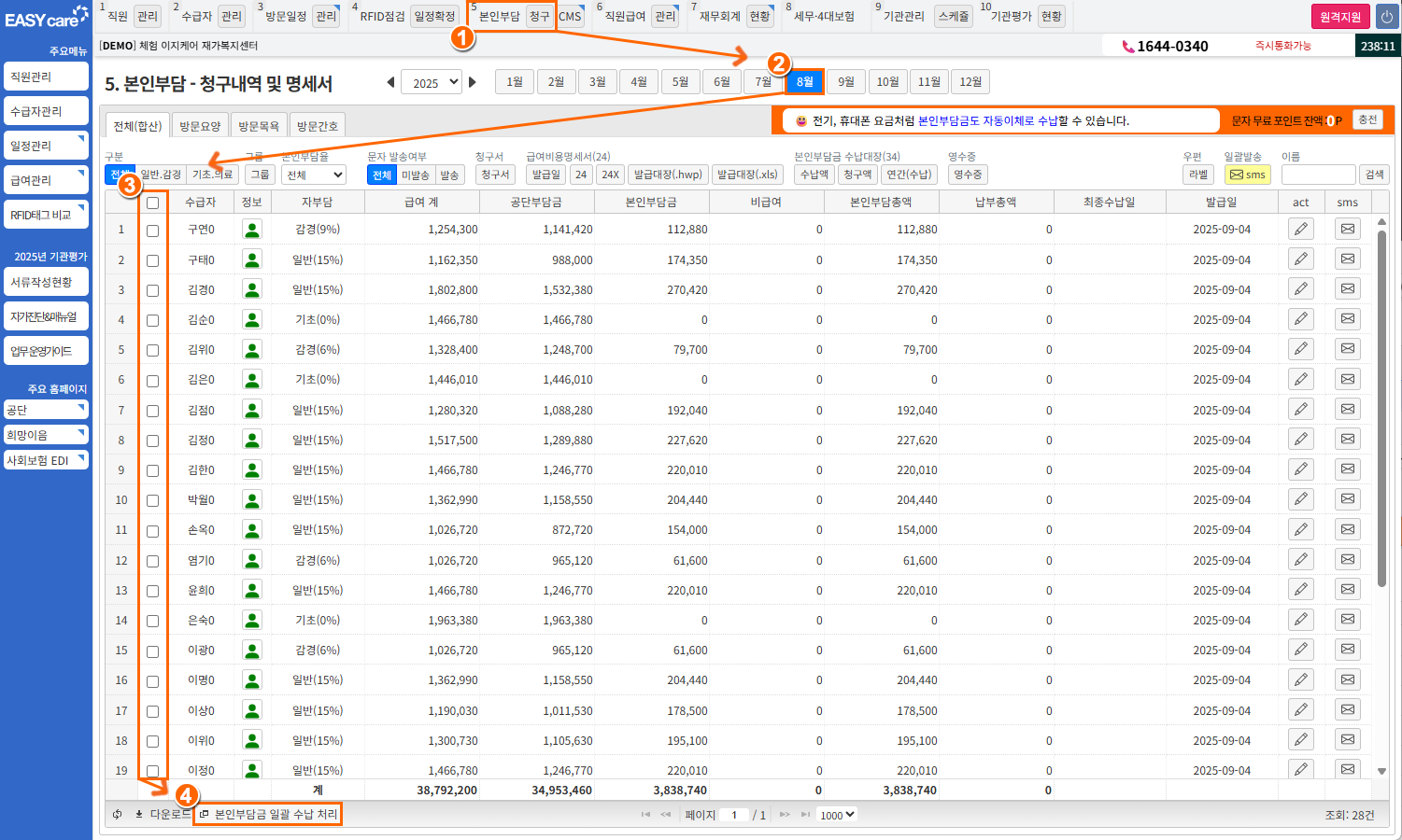 5본인부담 청구] 메뉴로 이동수납할 월 선택