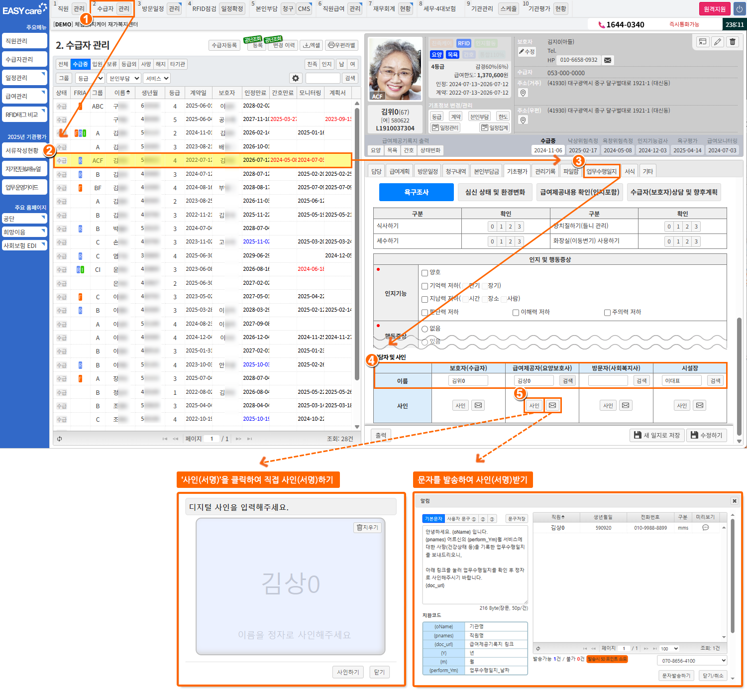 문자 발송시 기본적인 본인인증 (생년월일 입력)후 사인할 수 있기 때문에 문자 발송을 통해 사인(서명)하기를 권유드립니다.