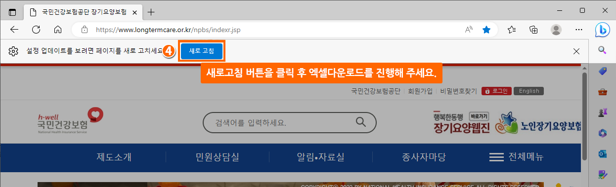 주소창 아래에 나타난 "새로고침" 버튼을 클릭