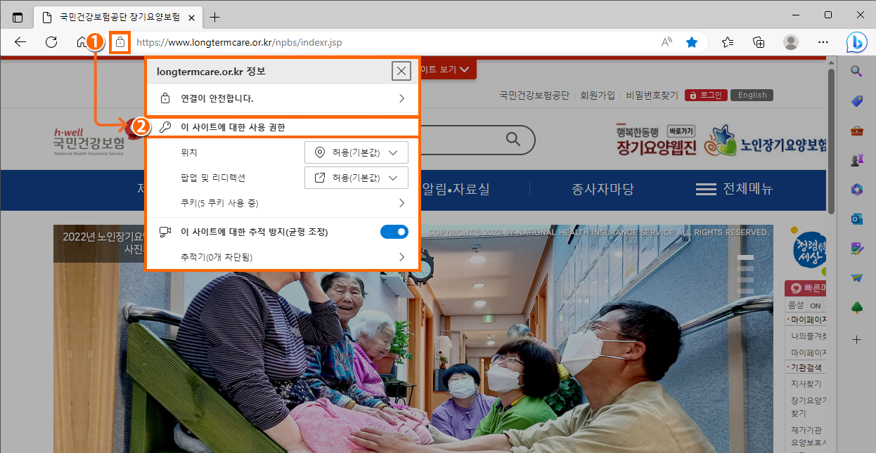 웹 브라우저 상단 주소창 왼쪽의 "자물쇠" 아이콘 클릭
