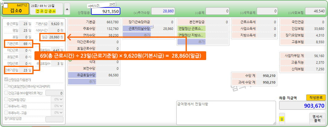 급여 명세서 일급 산정은 이 기준을 따르기 때문에 수작업 수정 시 기준 일수를 꼭 확인하세요