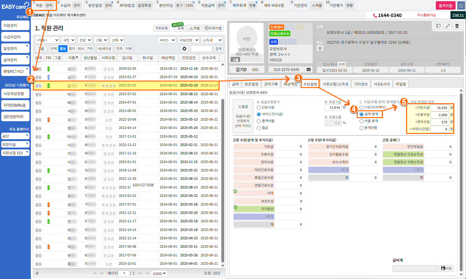 1직원 관리] > 직원 선택우측 탭: 수당설정