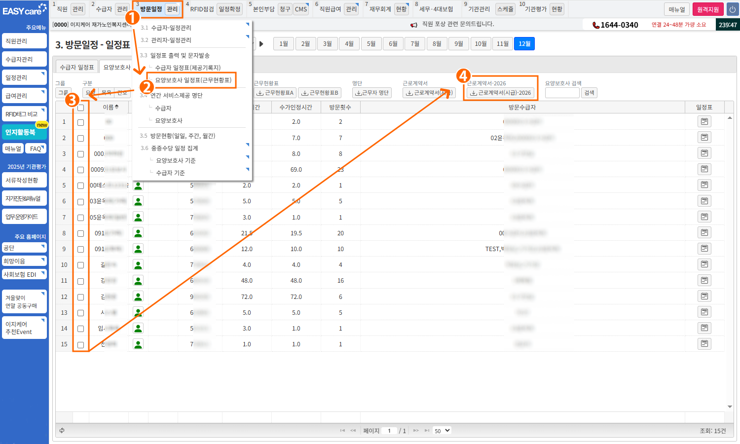 3방문일정] > [3.3요양보호사 일정표(근무현황표)] 이동상단에서 월 선택
