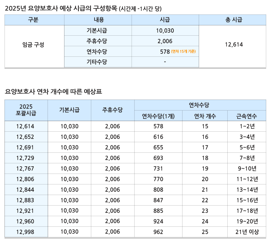 2025년 요양보호사 시급 및 연차수당 가이드 자료