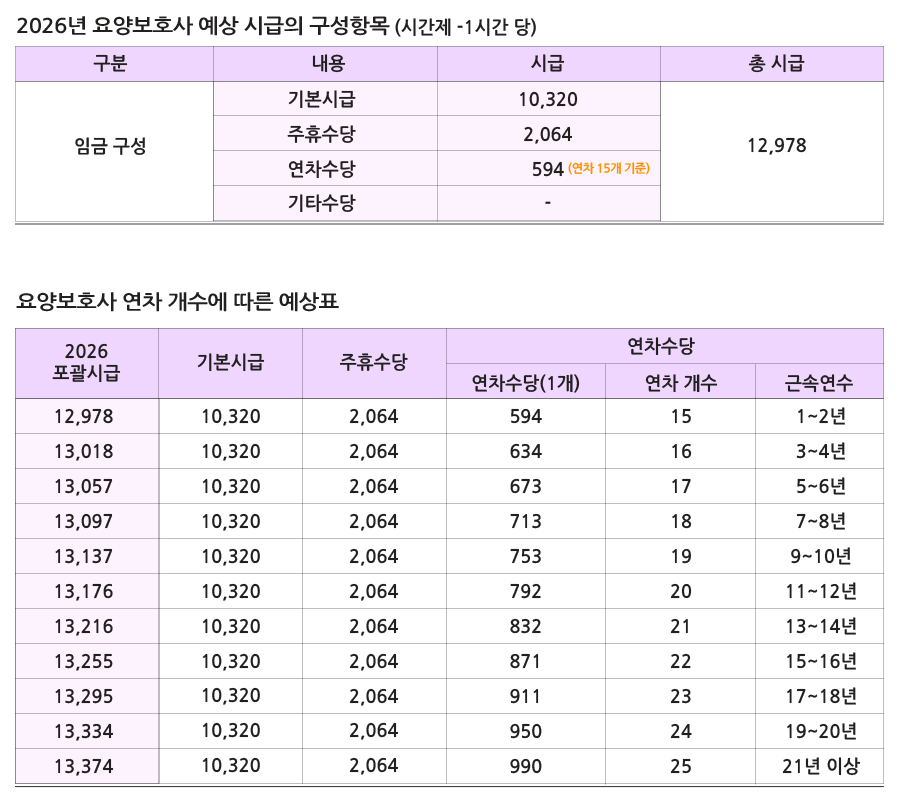 2026년 요양보호사 시급 및 연차수당 가이드 자료