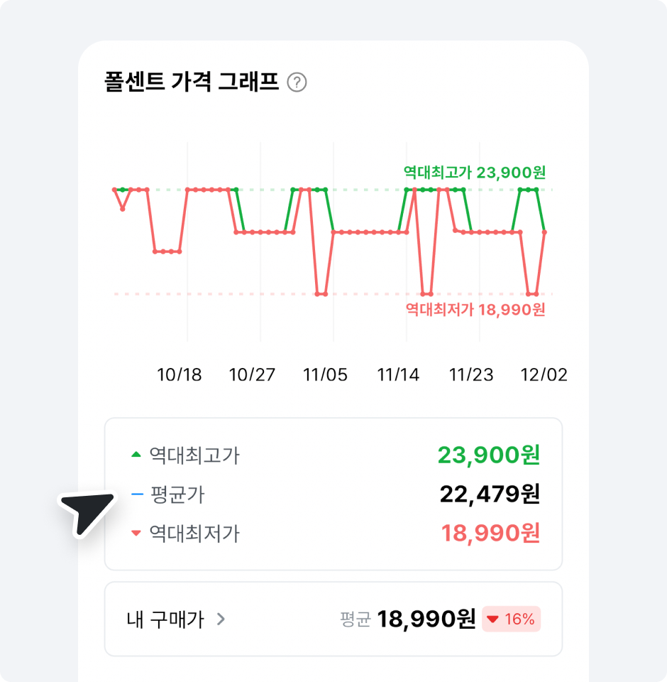 폴센트는 평균가보다 가격이 떨어졌을 때 가격 변동 알림을 보내드려요.