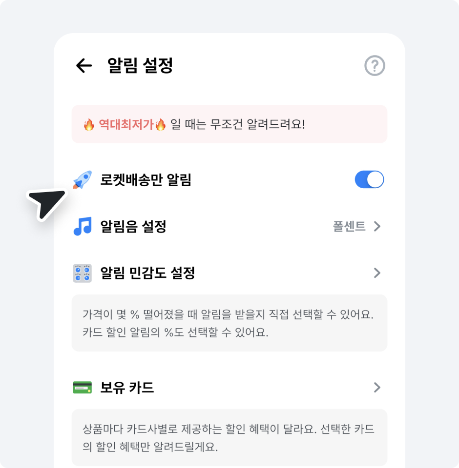 로켓 배송 알림만 받기
