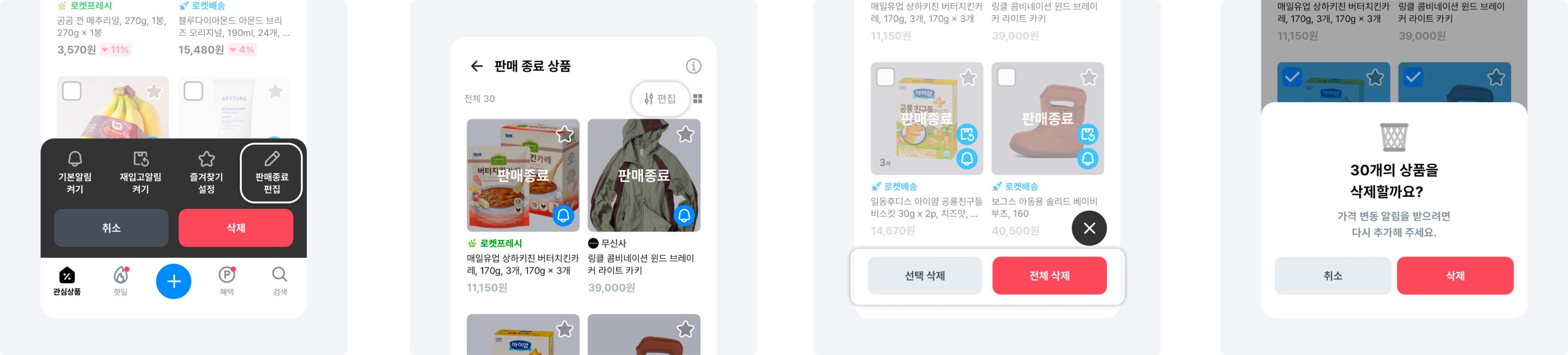 쇼핑몰에서 삭제되어 판매가 종료된 상품이에요. 판매자 문제로 상품이 사라졌거나, 해당 상품이 삭제되고 동일한 상품이 다시 등록되었을 수 있어요. 다시 등록된 상품은 자동으로 추가되지 않기 때문에 새롭게 추가해야 해요.