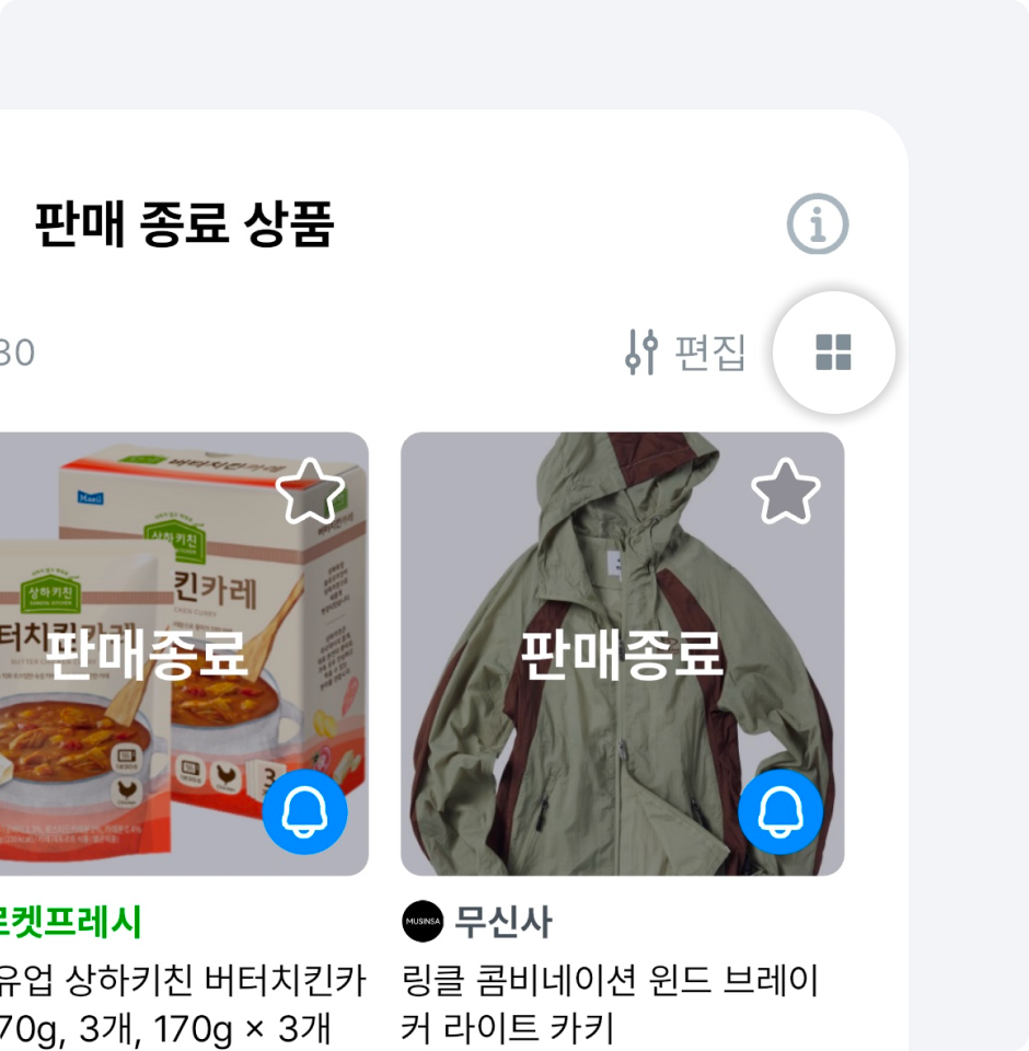 판매 종료 상품만 모아서 확인할 수 있어요.