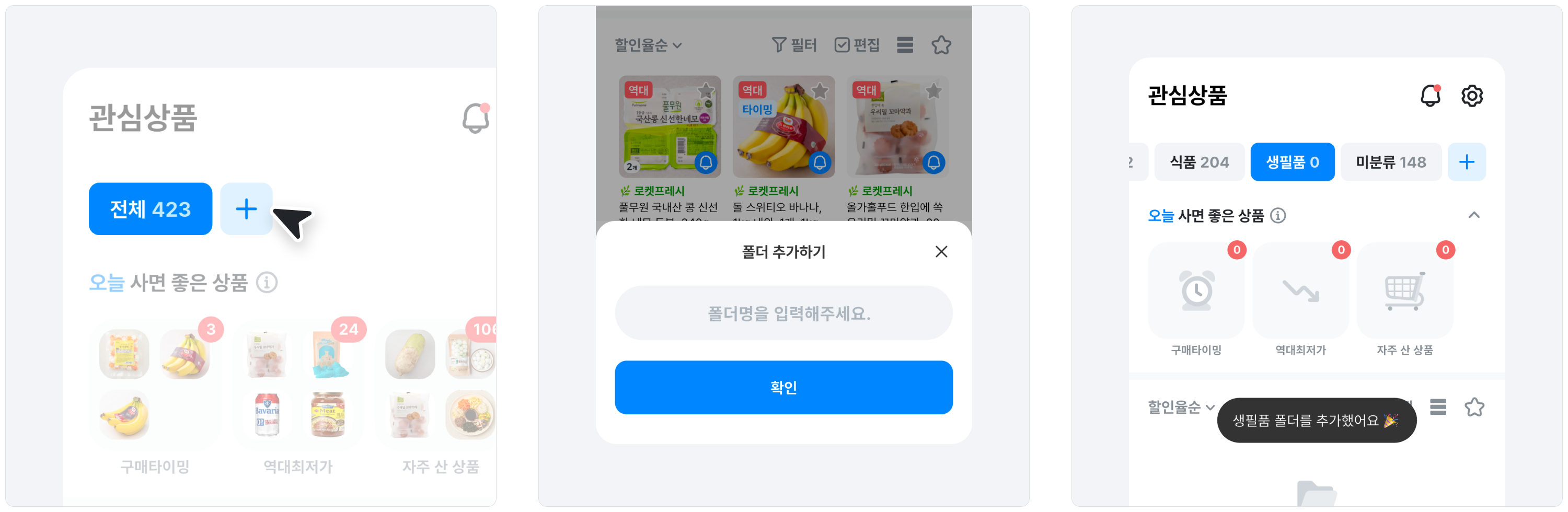 관심상품을 6개 이상 추가해야 폴더 기능을 사용할 수 있어요.