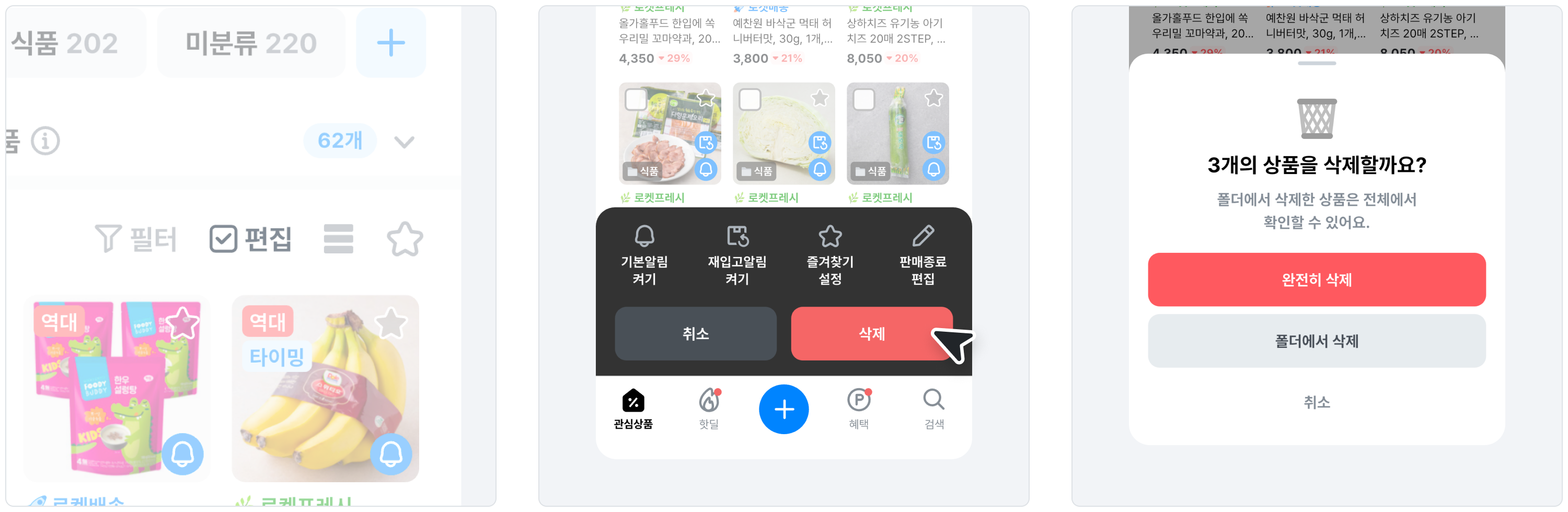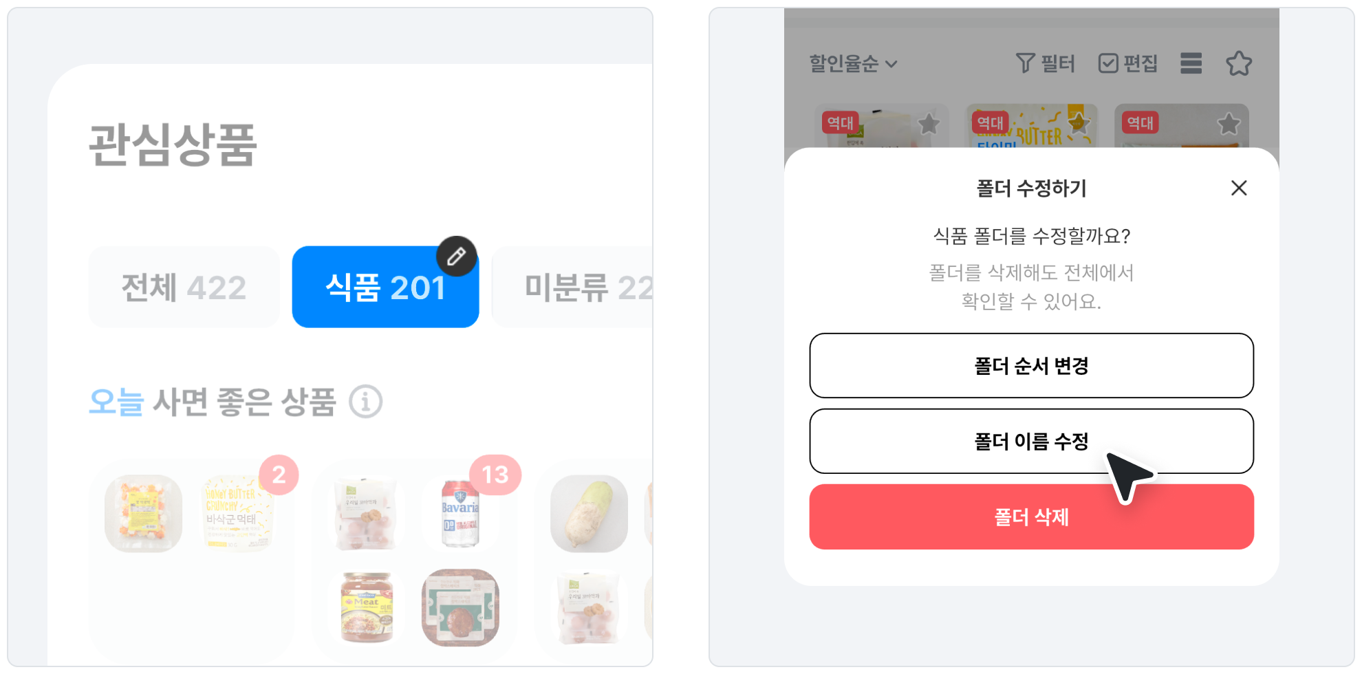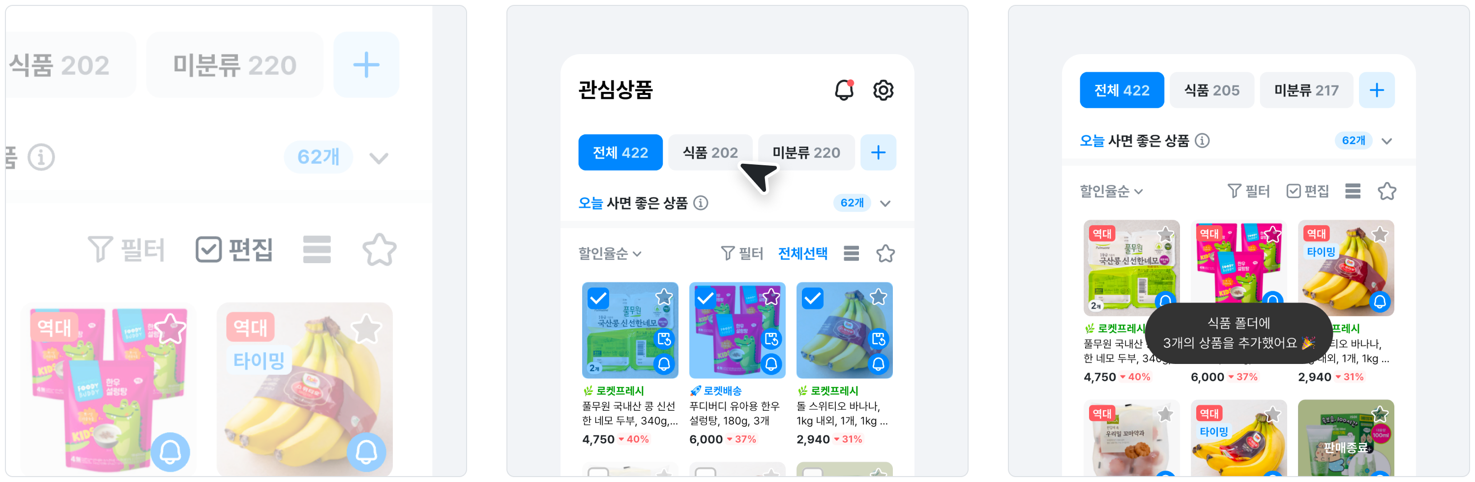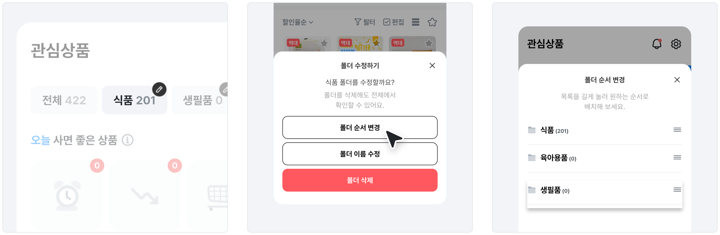 관심상품 목록 [편집] → 상품 선택 → 폴더 선택