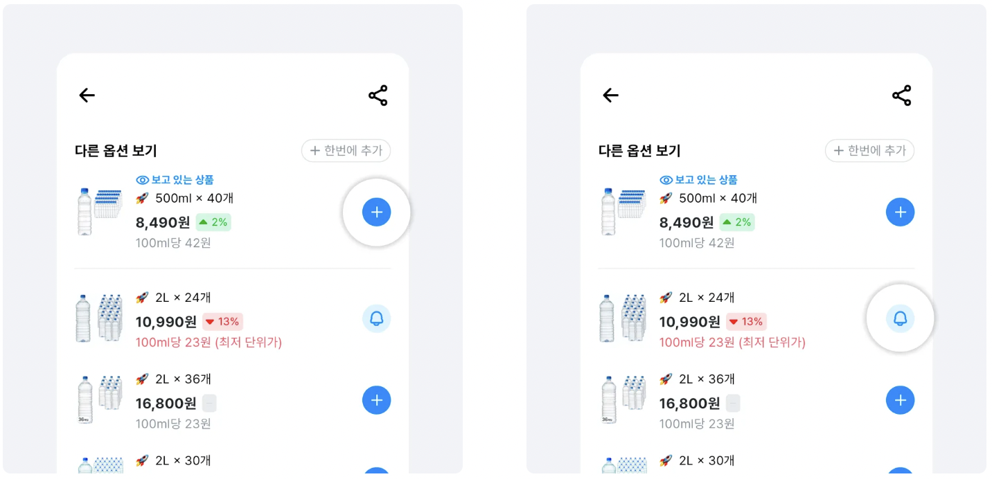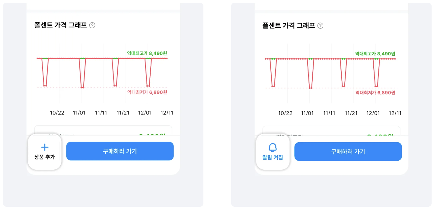 상세페이지 하단에서 + 상품추가 버튼을 누르면 관심상품으로 추가할 수 있어요.