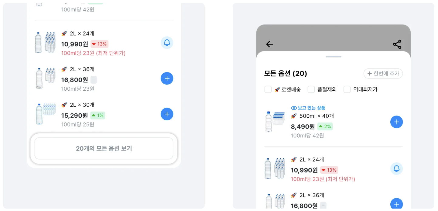상품 상세페이지 하단 [다른 옵션 보기] 에서