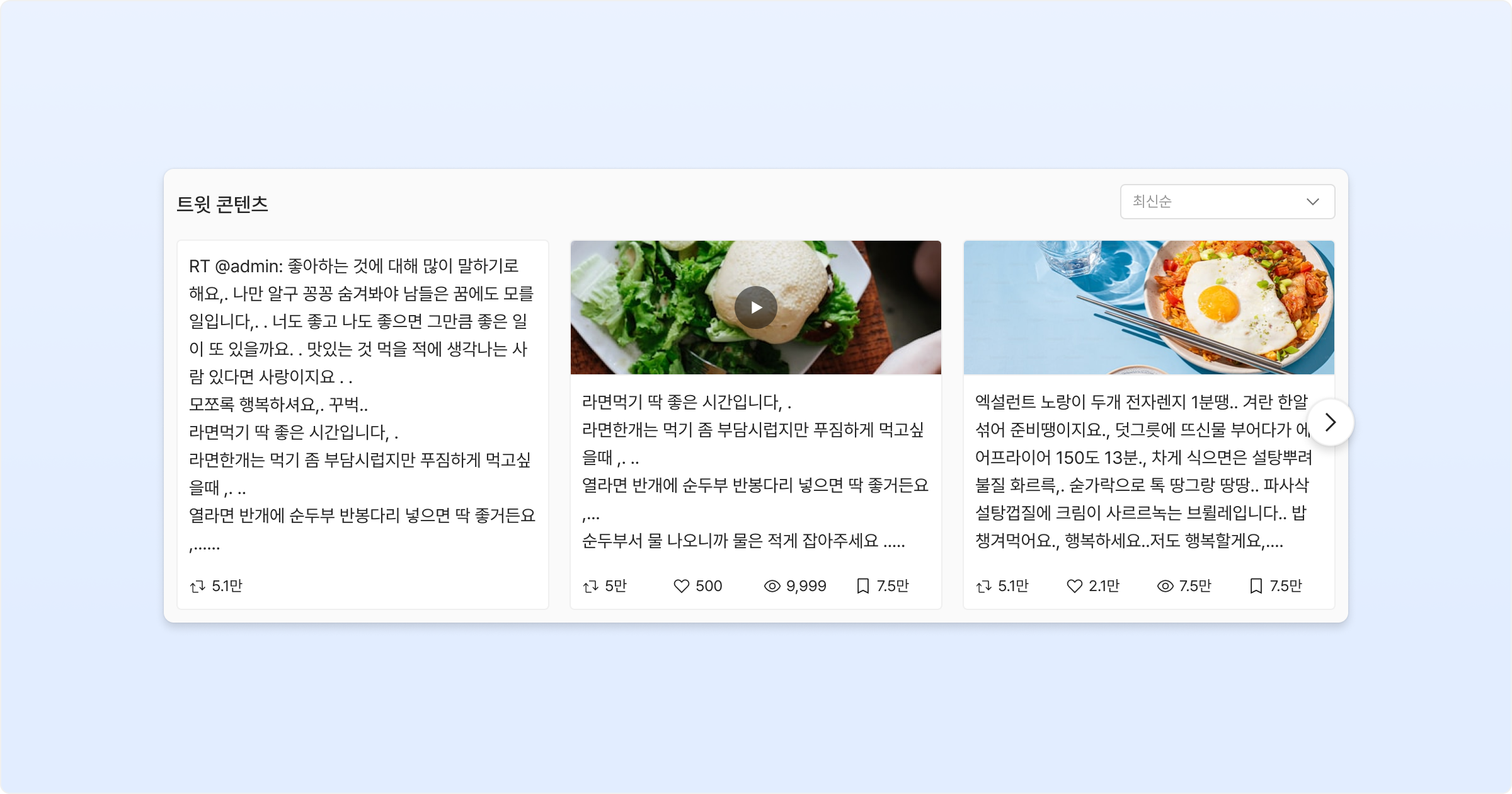 사용자의 필요에 따라 우측에 위치한 정렬 기준 선택 도구를 이용해 콘텐츠를 정렬할 수 있어, 원하는 기준에 따라 콘텐츠를 쉽게 탐색할 수 있습니다.