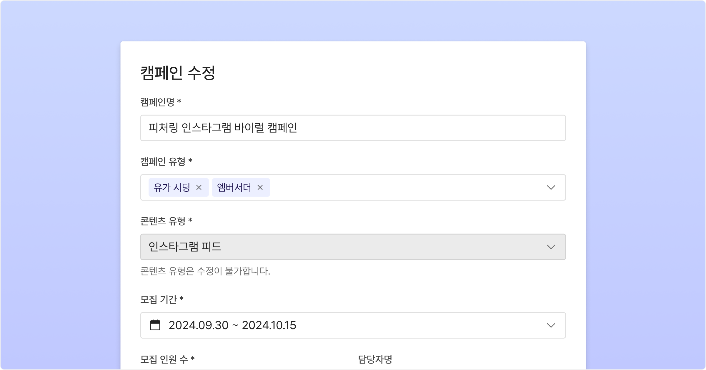 수정 아이콘 클릭 시 캠페인 수정 모달이 나타납니다.