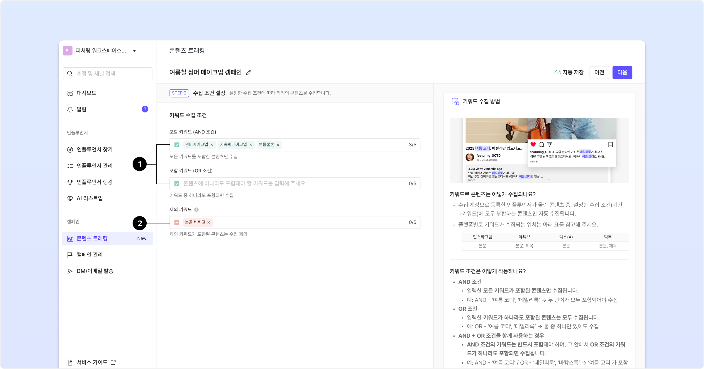 장기간 협업 인플루언서의 콘텐츠를 지속적으로 모니터링하고 싶을 때