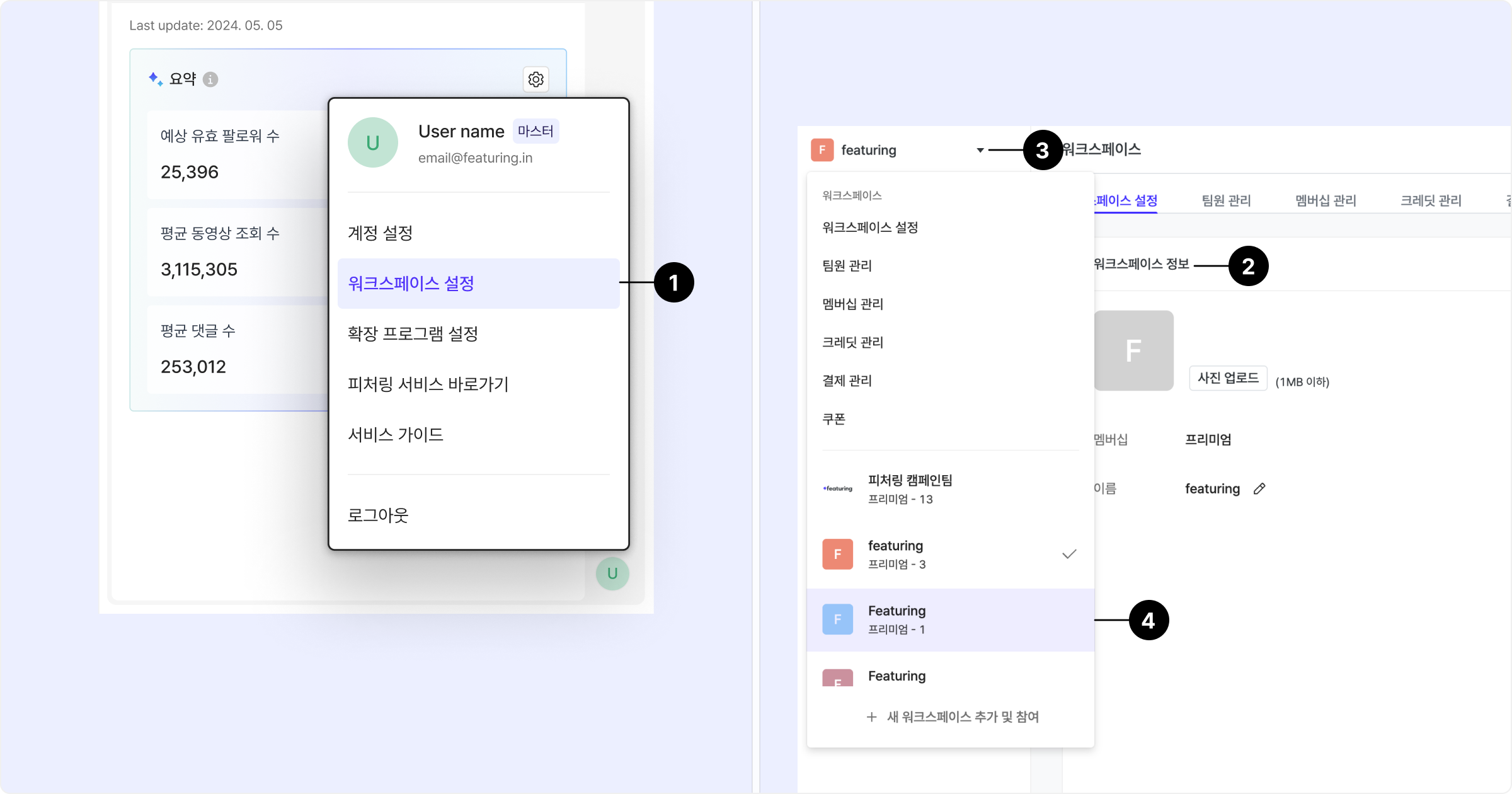 โ ์ฐ์ธก ํ๋จ 'ํ๋กํ' ์์ด์ฝ ํด๋ฆญ > '์ํฌ์คํ์ด์ค ์ค์ ' ๋ฒํผ ํด๋ฆญ.