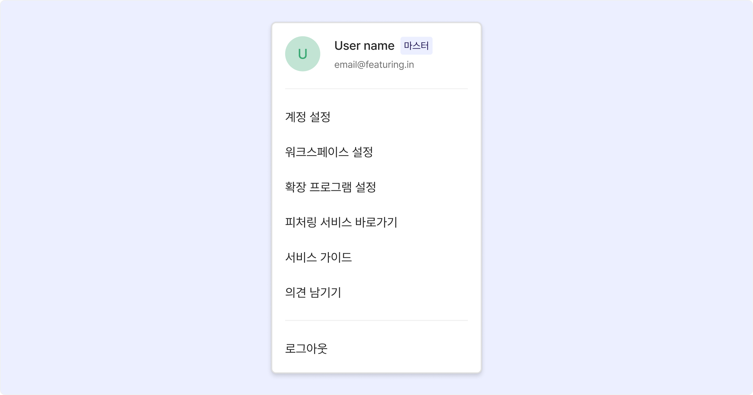 계정 설정: 피처링 제품 내 계정 설정 페이지로 이동합니다.