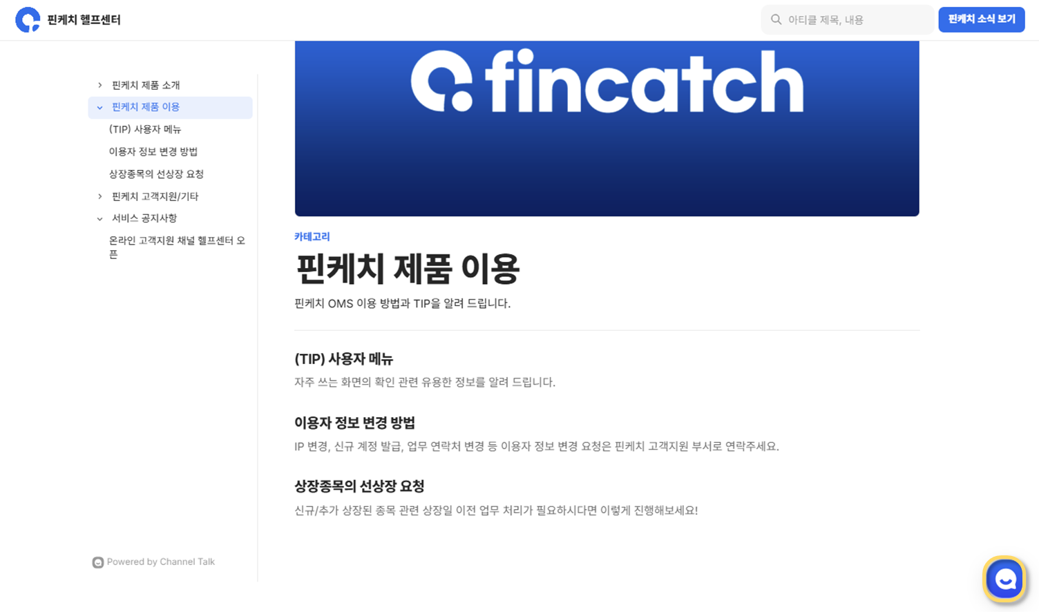 링크로 바로가기 ▶ https://docs.channel.io/fincatchkms/ko