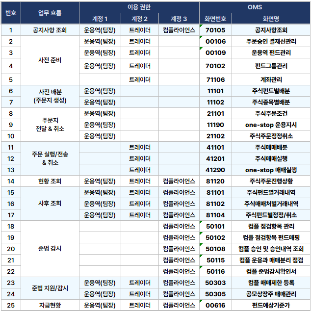 운용역/트레이더 이용자분들께서는 사전 준비부터 주문 지시, 사후 조회, 준법 지원까지 모든 단계 걸쳐 핀케치 OMS를 이용하고 계십니다.