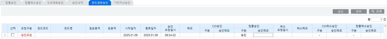 * [50108] 화면 : {펀드권한승인} 페이지에서 승인 현황 및 승인/반려 가능