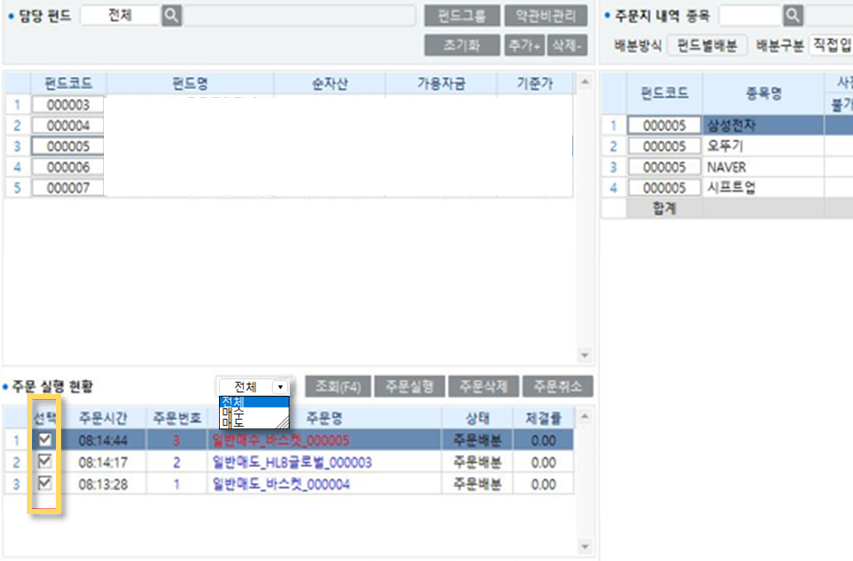 개선 목적 : 주문 실행 대상건들의 편리하고 자유로운 선택 및 신속하고 빠른 확인/실행