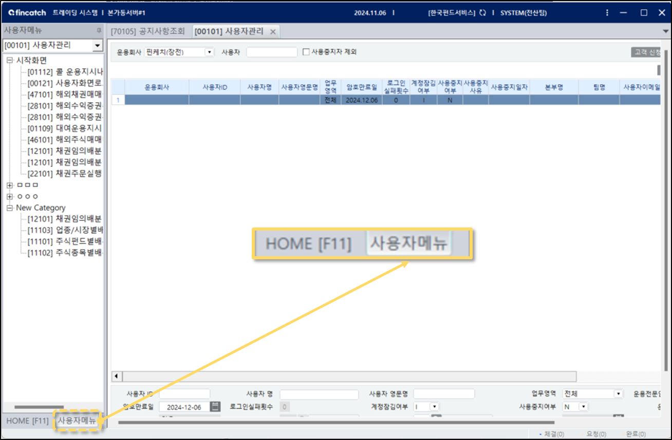 위치 : OMS 로그인 > 좌측 하단 [사용자메뉴] (HOME 탭 바로 옆)