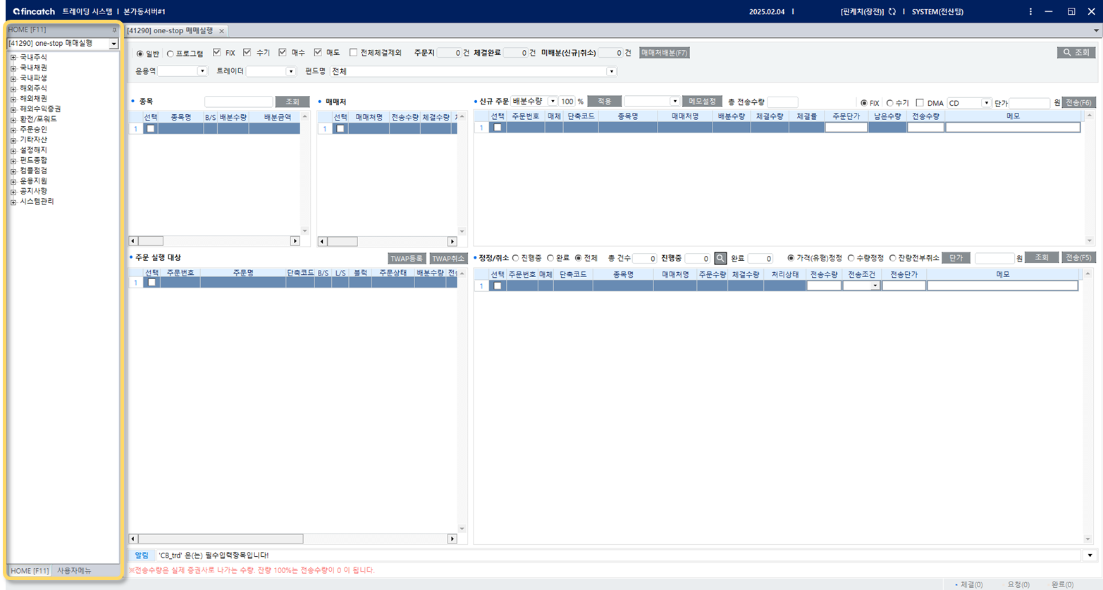 HOME 메뉴 위치 : OMS 로그인 > 좌측 HOME 메뉴 바