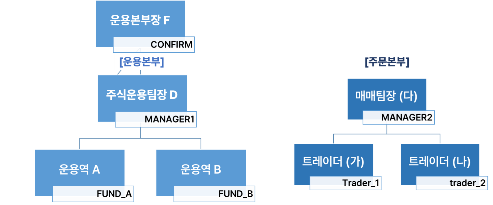 예시 2) 주식운용본부-운용팀 & 주문본부-매매팀