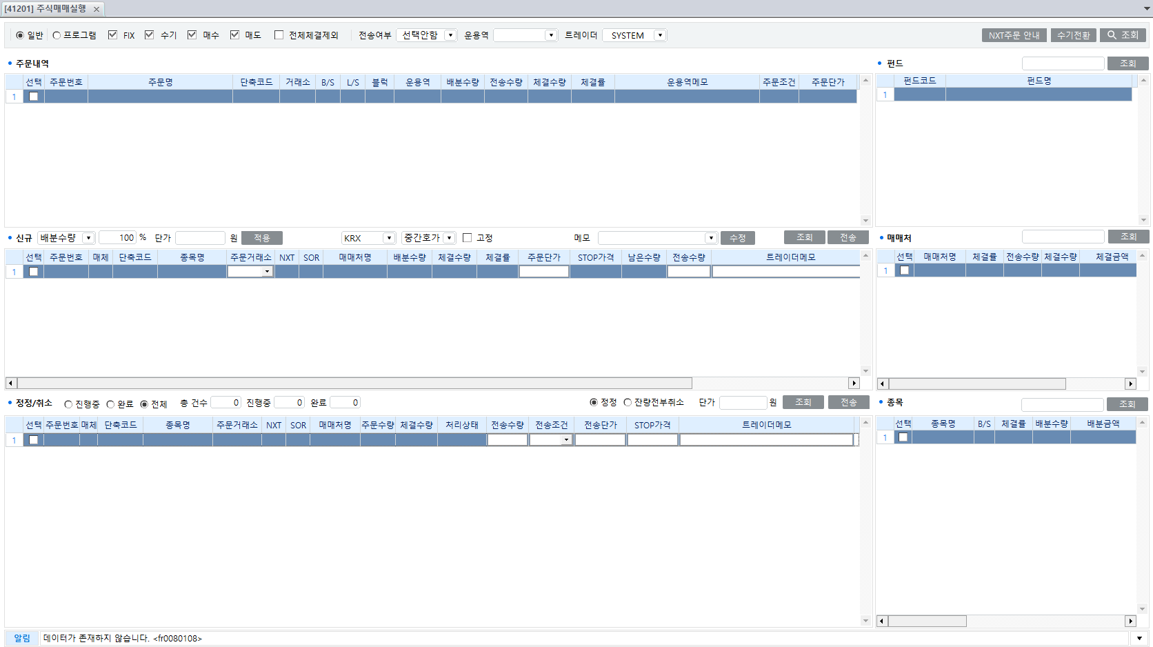 [전송]을 클릭하면 주문이 매매처(증권사)로 전송됩니다.