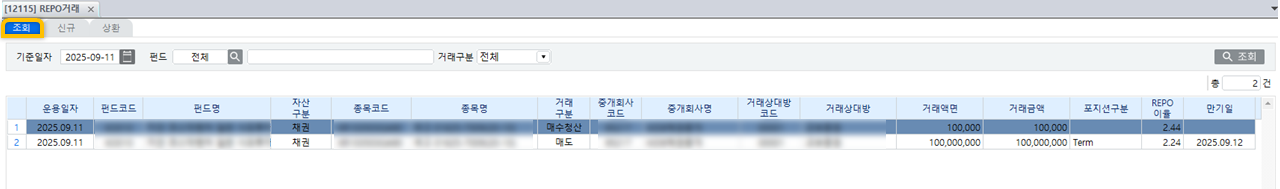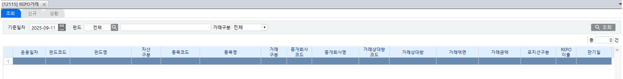 경로 : 국내채권 > 사전배분 > [12115] REPO거래