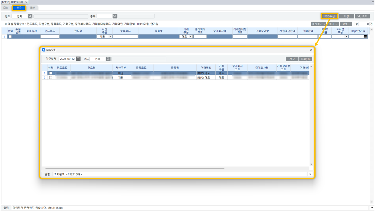 * [12115] REPO거래> 신규 페이지> KSD 수신 팝업
