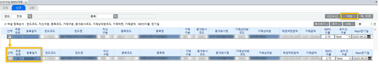 * [12115] REPO거래> 신규 페이지> 저장 후 비활성화 & 정보 업데이트