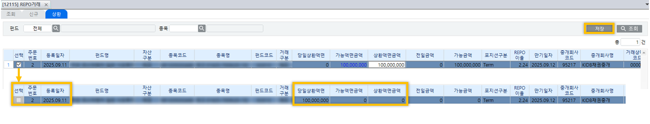 * [12115] REPO거래> 상환 페이지> 저장 후 비활성화 & 정보 업데이트