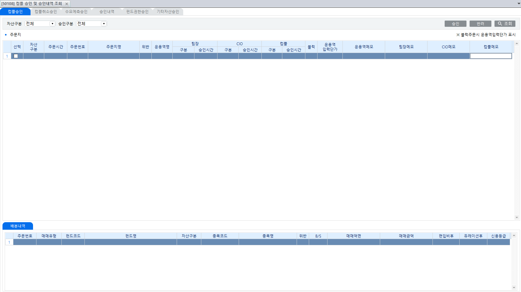 경로 : 컴플점검 > 자료관리 > [50108] 컴플 승인 및 승인내역 조회