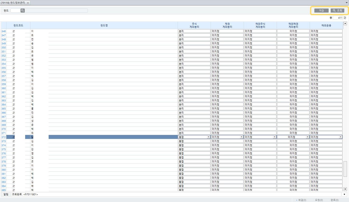 위치 : 펀드종합 > 자료관리 > [70118] 펀드정보관리